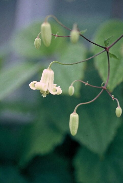 中国原産で、春から夏にかけて小さな黄色のベル状の花が咲き、秋には綿毛状の種子が観賞できます。
